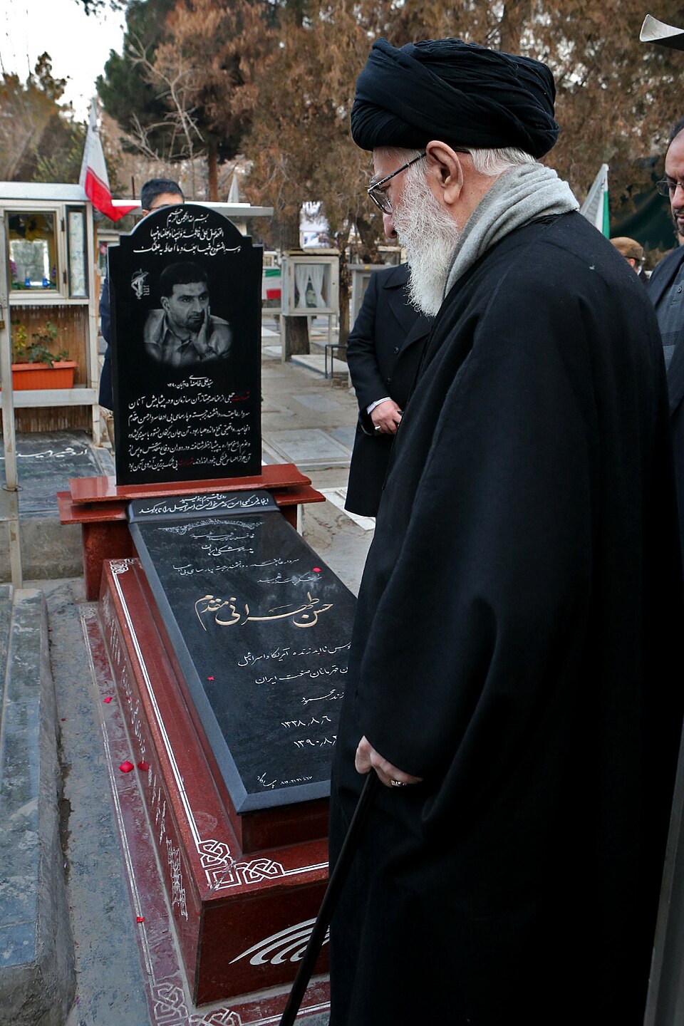 Crédit photo : Khamenei at the grave of Hassan Tehrani Moghadam 2, de Khamenei.ir, via Wikimedia Commons, license CC BY-SA 4.0.